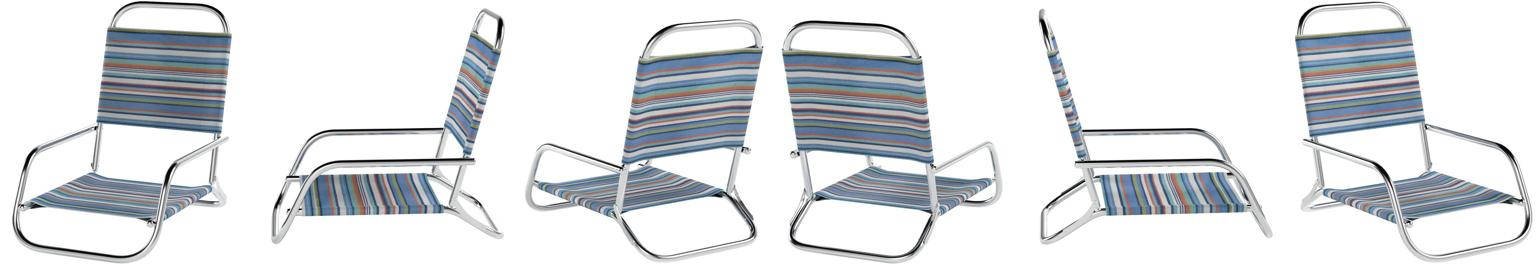 High quality telescope casual sun and sand folding beach chair, blue/white stripe version.