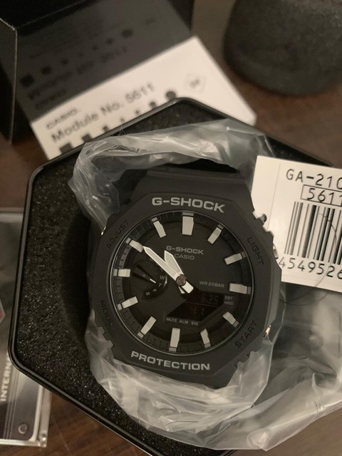 18+ Casio G-Shock Ga-2100-1Aer Carbon Core Guard Images. This minimalist design is provides a streamlined look without compromising quality. Both the digital and analogue areas of the watch face glow when the el backlight is turned on.